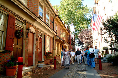 Elfreth's Alley, off 2nd St. between Arch and Race sts., is one of many narrow streets lined with houses that have stood since the days of Penn's Greene Countrie Towne. It is said to be the country's oldest continually inhabited residential street. House tours and information are available at the Elfreth's Alley Museum, 124 Elfreth's Alley.
