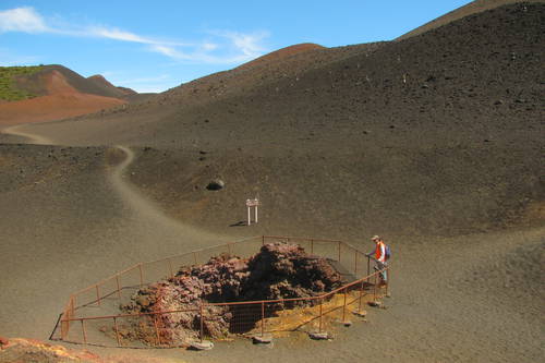 Kawilinau, near the valley‘s center in Haleakalā National Park, is 65 feet deep and may be observed from the rim. The head of the Sliding Sands Trail is at Haleakalā Visitor Center on the valley rim. This difficult trail begins with a steep descent to the crater floor. The trail skirts, but does not enter, the pit.