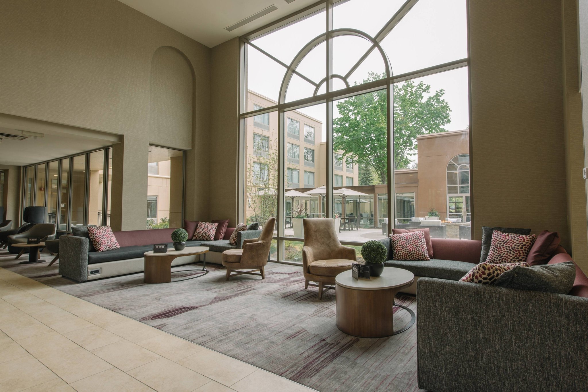 Each guest room has a calming gray color scheme, enhanced bedding and spacious desks. The mixed use lobby is a popular spot to gather or get a bit of work done. Interior Corridors, 4 Stories, Smoke Free, 239 Units