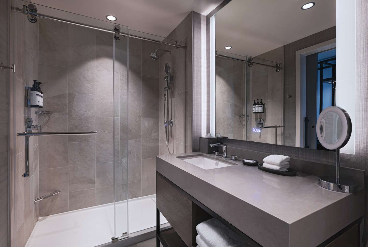 Layout, Vanity Area, Shower, Fixtures, Illumination, Amenities